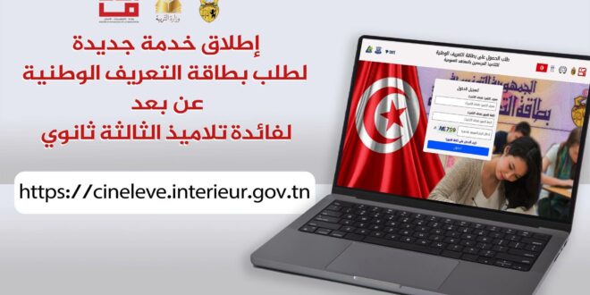 أطلقت وزارة تكنولوجيات الاتصال، اليوم الثلاثاء 23 ديسمبر 2025، خدمة جديدة لطلب بطاقة التعريف الوطنية عن بعد لفائدة تلاميذ السنة الثالثة ثانوي.وافادت الوزارة،في بلاغ، ان الولوج الى الى المنصة يتم عبر استعمال معرف التلميذ