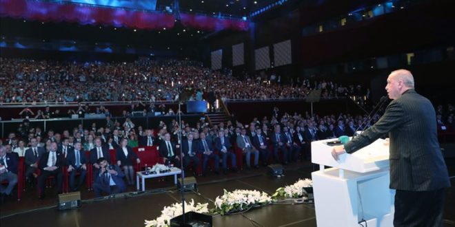وفي معرض حديثه عما يسمى بـ”صفقة القرن”، والتي تعتزم واشنطن إعلانها، اعتبر أردوغان، أن الصفقة تشكلّ “مشروعا لزعزعة الشرق الأوسط، وهو مصطلح جديد للتقسيم والتجزئة والابتلاع، وتركيا لن تسمح بذلك”.
