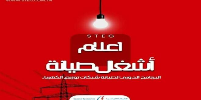 أفادت الشّركة التّونسيّة للكهرباء والغاز إقليم المهدية أنّ التيّار الكهربائي سينقطع بسبب أشغال الصّيانة يوم الأحد 05 افريل 2026 من السّاعة الثامنة ونصف صباحا إلى السّاعة الواحدة ظهرا بقصور الساف: كامل منطقة سلقطة الحواجة والحي الكائن خلفها و إقامة محسن و كامل منطقة سلقطة يقع إرجاع التيّار الكهربائي بدون سابق إنذار حسب إنتهاء الأشغال بالمناطق المذكورة.
