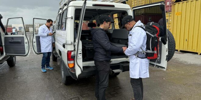 حيث تم استعمال المخابر المتنقلة والمعدات المتخصصة التابعة للمركز للقيام بعملية مسح للحاويات المتواجدة بالميناء.