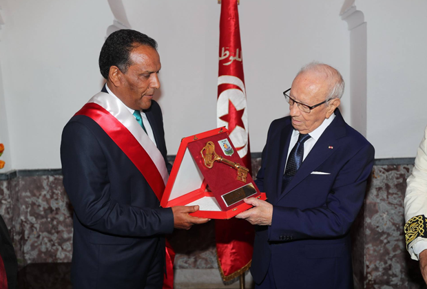 سلم اليوم الأربعاء 4 أكتوبر 2017 رئيس النيابة الخصوصية حسين بو شهوة مفتاح مدينة سوسة لرئيس الجمهورية الباجي قائد السبسي.