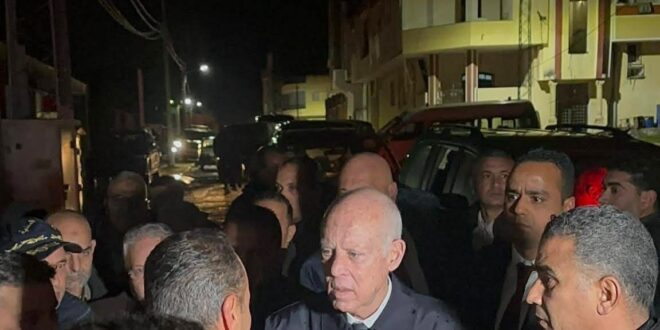 تحول رئيس الجمهورية  قيس سعيد مساء أمس الى مدينة المكنين التي فقدت أربعة من أبنائها في الفيضانات التي شهدتها المدينة .