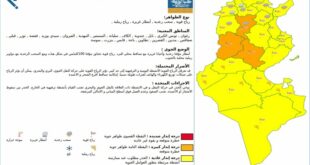 والريح من القطاع الشمالي قوية من 30 إلى 40 كلم/س وتصل إلى 70 كلم/س قرب السواحل الشرقية وأثناء ظهور الخلايا الرعدية مع دواوير رملية محلية بالجنوب.