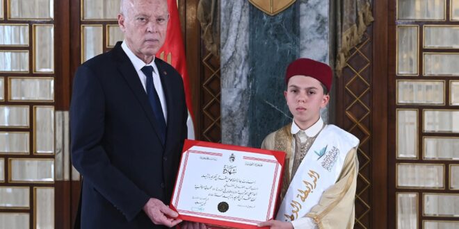 أشرف رئيس الجمهورية قيس سعيّد ظهر هذا اليوم، 26 من شهر رمضان المعظّم، 16 من شهر مارس الجاري بقصر قرطاج، على موكب لتوزيع الجوائز على المتفوّقين في المسابقة الوطنيّة لحفظ القرآن الكريم.