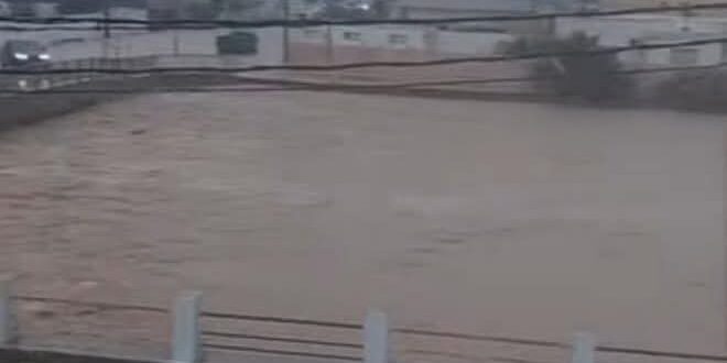 فيضان مياه وادي القصبات بمعتمر و إنقطاع الطريق الرابطة بين معتمر و الثريات
