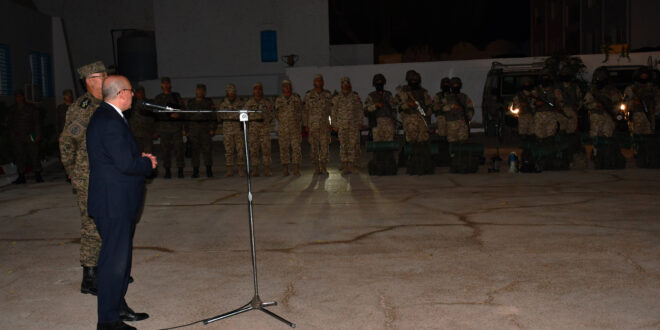 واطّلع الوزير، على مختلف المهام التي يضطلع بها الفيلق الأوّل الترابي الصحراوي برمادة (ولاية تطاوين) والكتيبة الترابية بالزواميخ (ولاية مدنين)، ودور مختلف التشكيلات العاملة بالميدان، وأهميّة الترتيبة الدفاعيّة ومنظومة المراقبة الإلكترونيّة في حماية الشريط الحدودي، والتصدّي لخطر الإرهاب والجريمة المنظمة العابرة للحدود، والحدّ من عمليّات التهريب واجتياز الحدود خلسة.