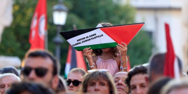 ومباشرة بعد الإعلان عن اعتراض قوات البحرية أسطول الصمود الذي يحمل مساعدات إنسانية لقطاع غزة انطلقت مظاهرة في العاصمة الإيطالية روما احتجاجا على عملية الاعتراض.