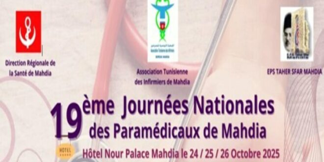 أكد الناصر بلعيد رئيس جمعية الممرضين التونسيين فرع المهدية أن الأيام الوطنية التاسعة عشر للإطارات شبه الطبية واليوم العاشر للبحث في علوم التمريض ستنطلق أيان 24و 25 و 26 أكتوبرالجاري بمشاركة أكثر من 500 ممرض وممرض من كامل أنحاء الجمهورية و بمشاكة دولية على غرار ليبيا والجزائر وموريطانيا تحت شعار “ التجديد اسلوب لرعاية أفضل”.